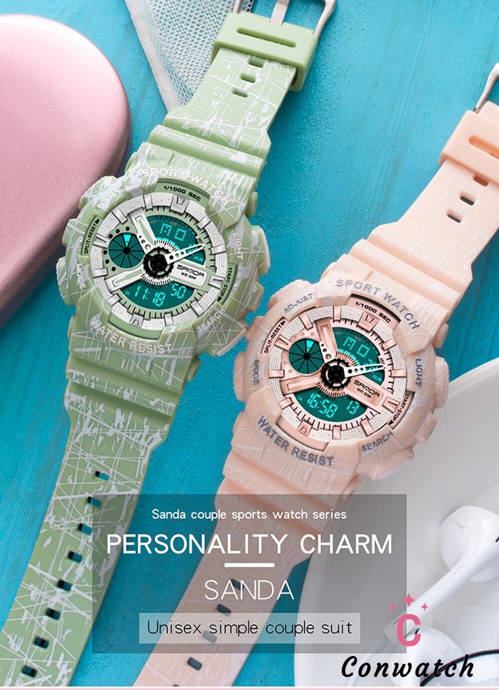 【women rose gold】防水時計 デュアルディスプレイ 男性 女性 クォーツ ミリタリー スポーツ レディースウォッチ 女性用腕時計 T230625221507_05