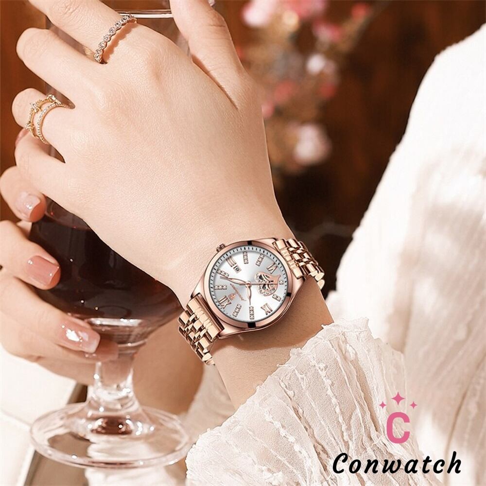 【Red】ステンレス鋼 ピンクゴールド Podedagar 女性 時計 ファッション クォーツ 防水 壁 ギフト レディースウォッチ 女性用腕時計 T230704100152_08